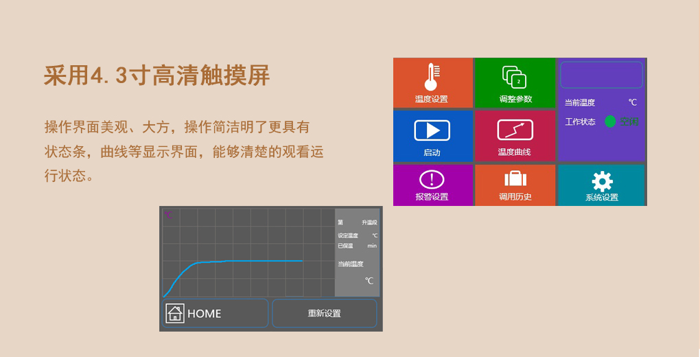 首次采用碳纖維復合真空加熱技術,升溫效率高,溫度均勻性好。采用行業領先的納米云隔熱材料,熱效率高,節能環保。更具有4.3寸高清LCD觸摸屏操控界面,簡單易懂,并具實時顯示溫度曲線功能,摒棄了以往溫控表頭繁瑣的操作。 XTG5000適用于食品、醫療、農業、林業、生化等行業已經高等院校、科研部門對種子、土壤、植株、飼料、礦石等化學分析之前的樣品消解處理 |